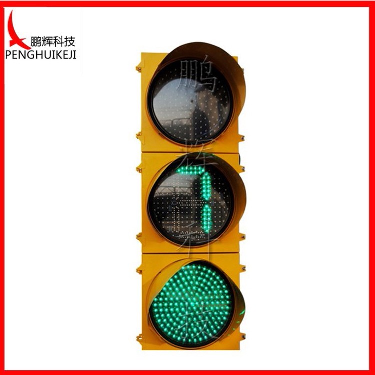 上為紅滿屏,中間為黃滿屏含倒計時器,倒計時器為“8”字型顯示,下為綠滿屏信號燈